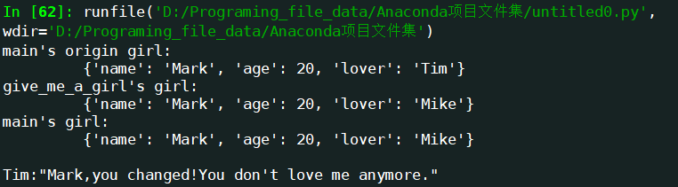 这是python传可变对象的实质,如果give_me_a_girl里面的girl重新绑定了新的对象,再做变化,就不会再影响到main’s girl了;但是很多人看了这种实例,就断言:python传参方式和C++里的引用传递一样