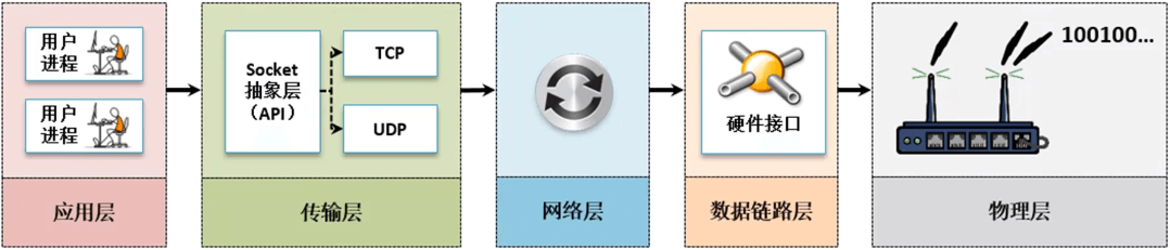 不管使用的是TCP协议还是UDP协议,都是对传输层操作的保证,数据按照OSI七层模型来讲也一定要通过网络层进行路由的配置,同时利用数据链路层添加数据帧,最终利用物理层进行发出,但是由于Socket机制的存在,所以开发者只需要编写处理的核心代码即可,而至于说如何传输的,如何进行具体的协议操作,就完全被封装起来。