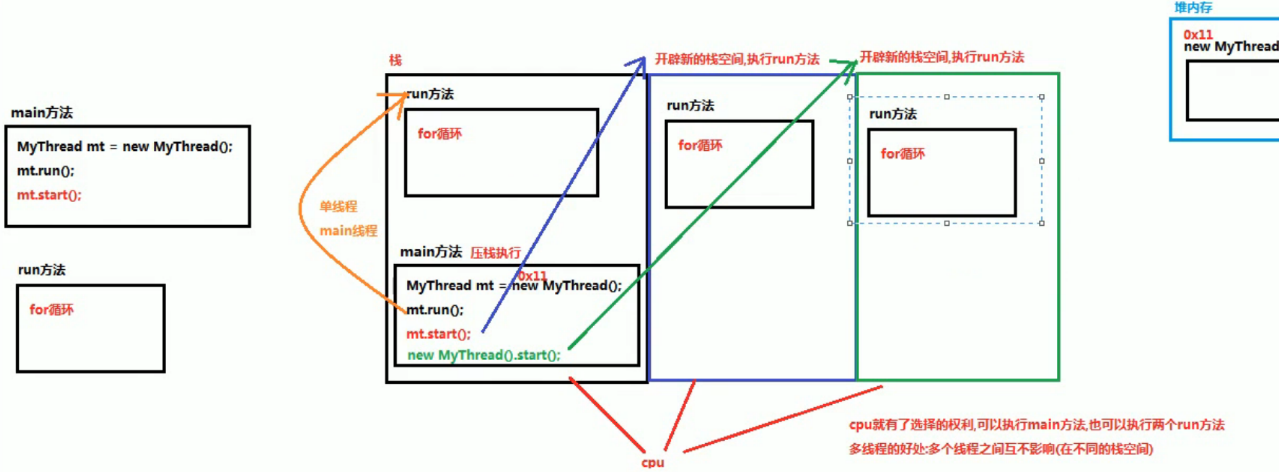 结果是多个线程并发地运行;当前线程(main线程)和另一个线程(创建的新线程,执行其run方法)。