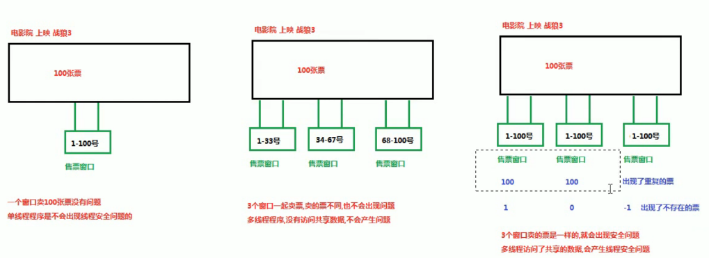 多线程访问共享数据就会出现类似的不安全问题:一张票被卖掉了多次,本来20张票,买了26张,这样用户一定是不愿意的。