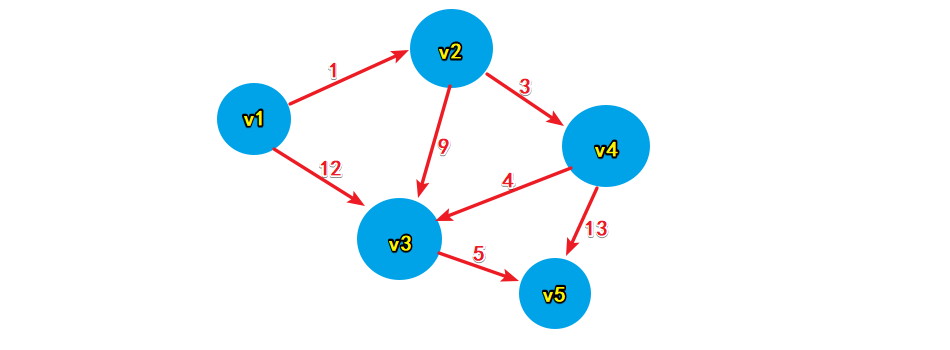 注意:路径是单项的,Vn到Vm 和 Vm到Vn 权值很可能不同,比如一个是-1,一个是3